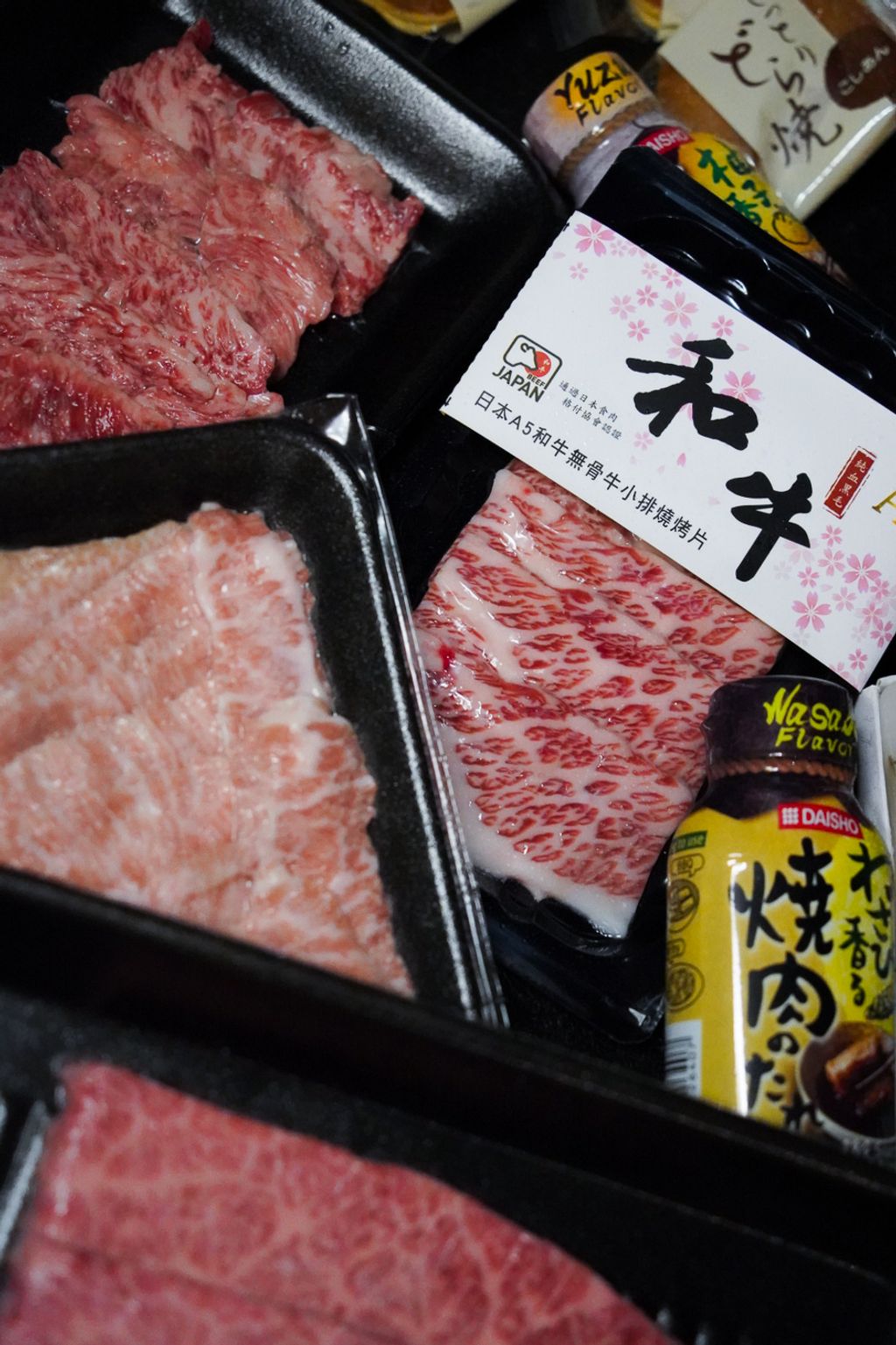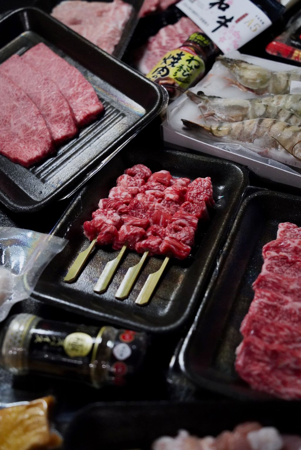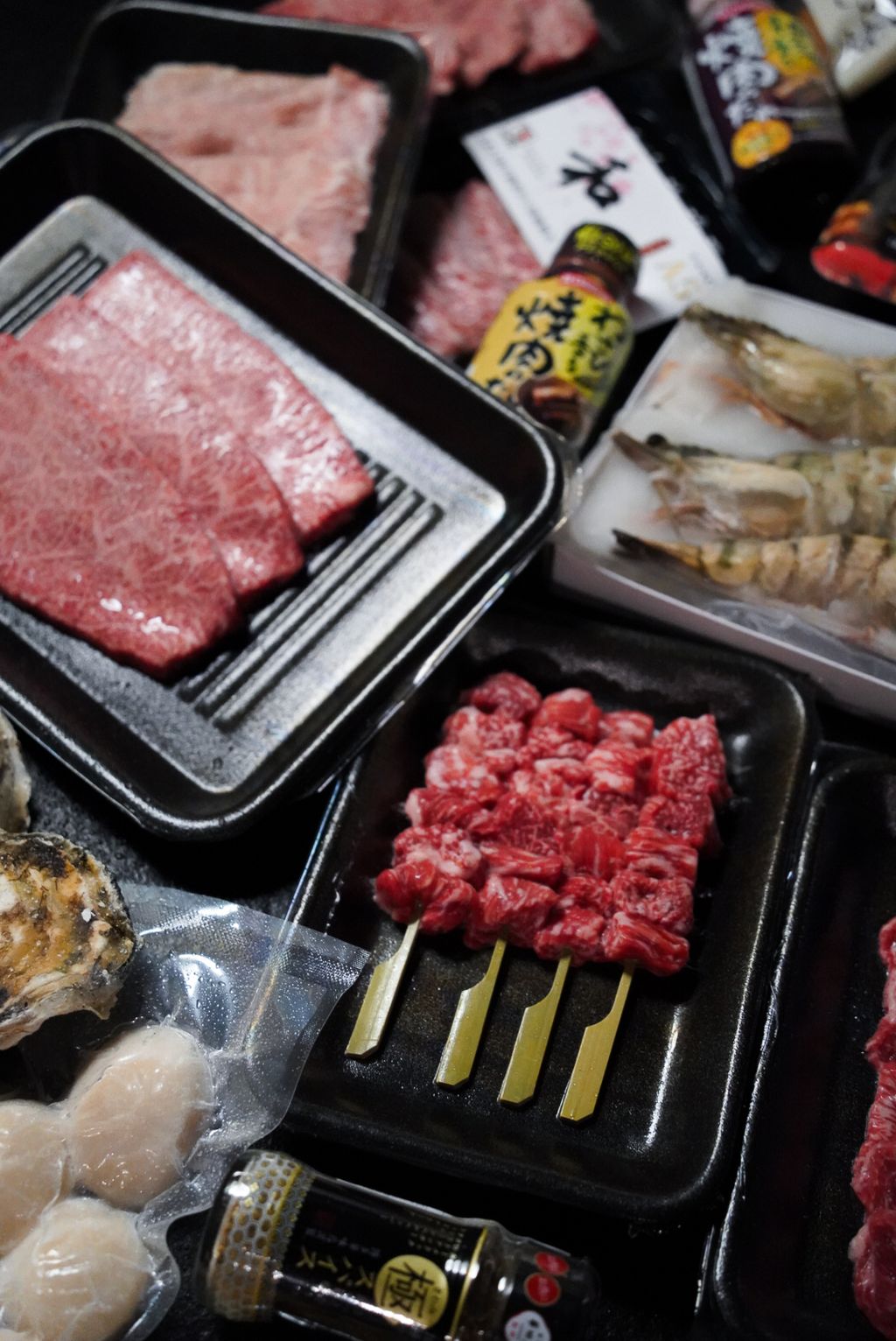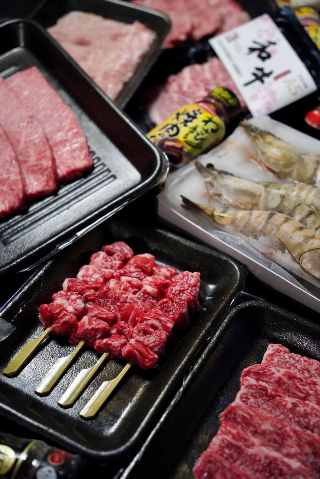 日本A5和牛小排、橫隔膜、翼板與和牛串,搭配F1混種牛與伊比利松阪豬,口感層次豐富。